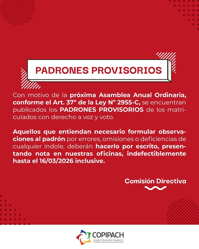 El COPIPACH es un organismo creado por Ley 2955-C para regular el ejercicio. Su ámbito de acción es toda la Provincia del Chaco.