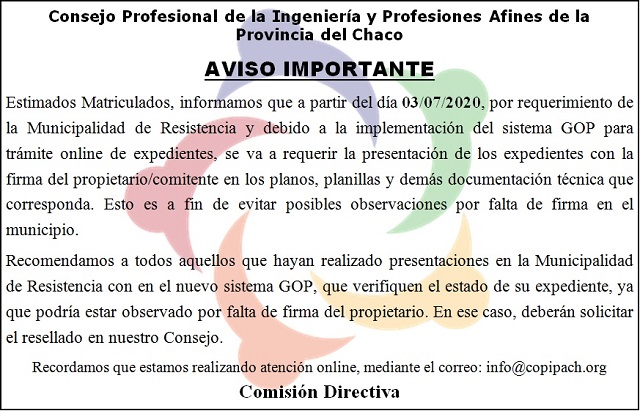 Leer másA partir del día 3 de Julio de 2020, se va a requerir la presentación de los expedientes con la firma del propietario/comitente en los planos, planillas y demás documentación técnica que corresponda.