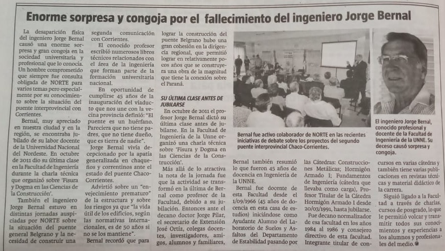 Desde el COPIPACH participamos con profundo dolor de la desaparición física del Ingeniero Jorge Bernal.